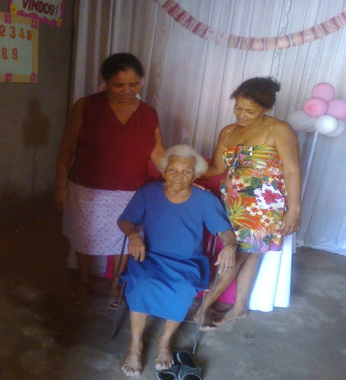 "Na Paróquia Santa Terezinha em Codó – MA, em seu primeiro mês de realização de visitas domiciliares a pessoas idosas, a líder Ivanilda Cunha das Neves Silva que é Agente Comunitária de Saúde, está tendo o privilégio de acompanhar a pessoa idosa centenária Maria Filomena dos Santos, nascida em 13 de agosto de 1916. E na primeira reunião mensal de lideres que aconteceu dia 13 de agosto de 2016, tivemos muito o que celebrar: o inicio das atividades de 15 novos lideres; mais 114 pessoas idosas acompanhadas na Diocese de Coroatá e os 100 anos de Filomena dos Santos, que tem 4 filhos, 4 netos e 4 bisnetos."