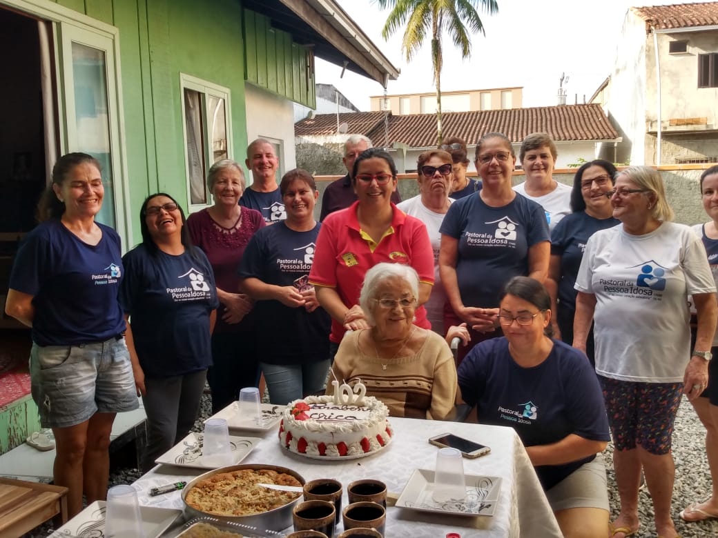 Para comemorar esta data tão especial, os líderes da Pastoral da Pessoa Idosa da Paróquia Santa Luzia, felicitaram Dona Chica como é conhecida, com direito a bolo e canto de parabéns.
