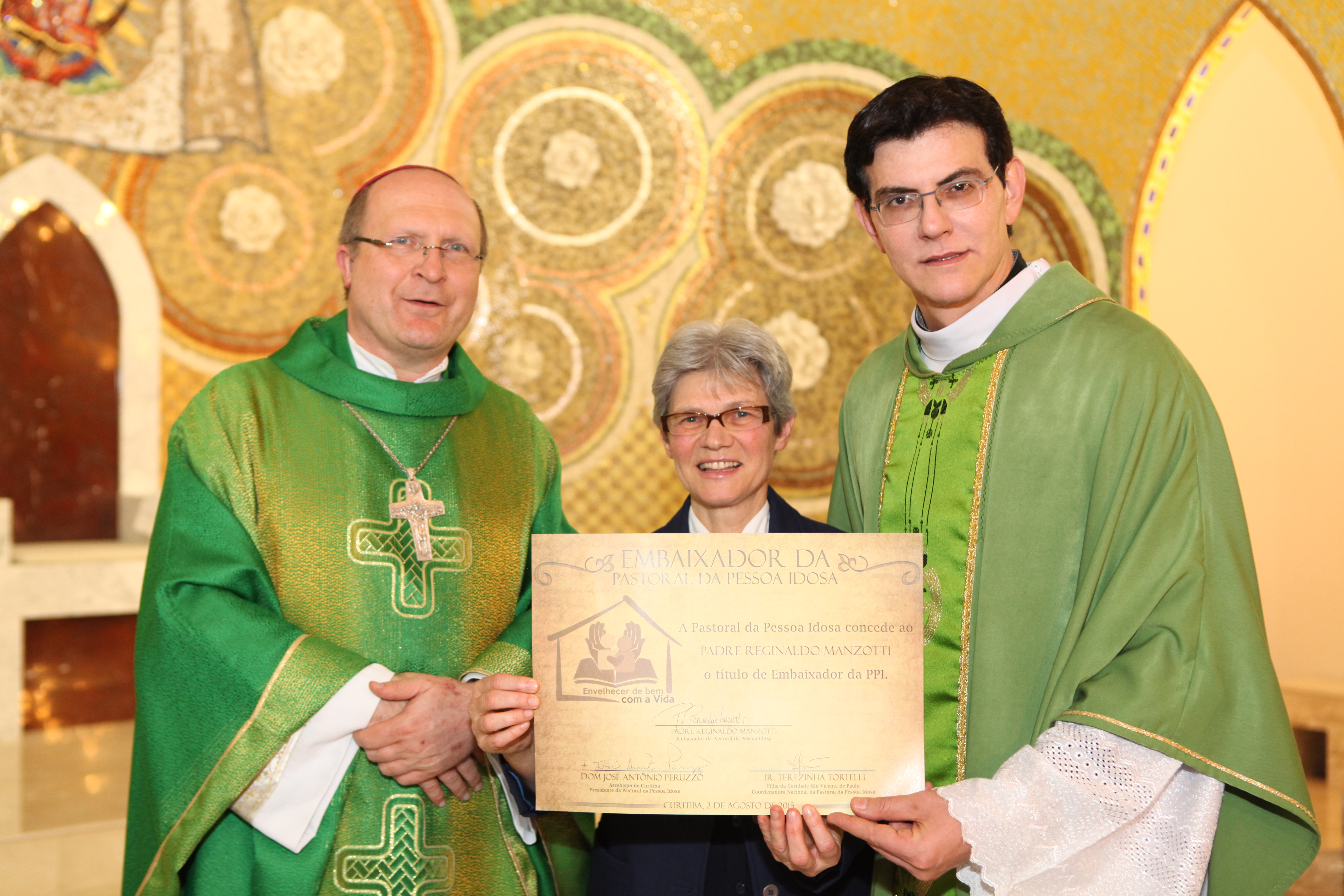 No último domingo, dia 02 de agosto, em celebração realizada no Santuário Nossa Senhora de Guadalupe, em Curitiba (PR) Dom José Antônio Peruzzo, Arcebispo Metropolitano de Curitiba e Presidente da Pastoral da Pessoa Idosa, nomeou o Padre Reginaldo Manzotti como Embaixador da Pastoral da Pessoa Idosa.
