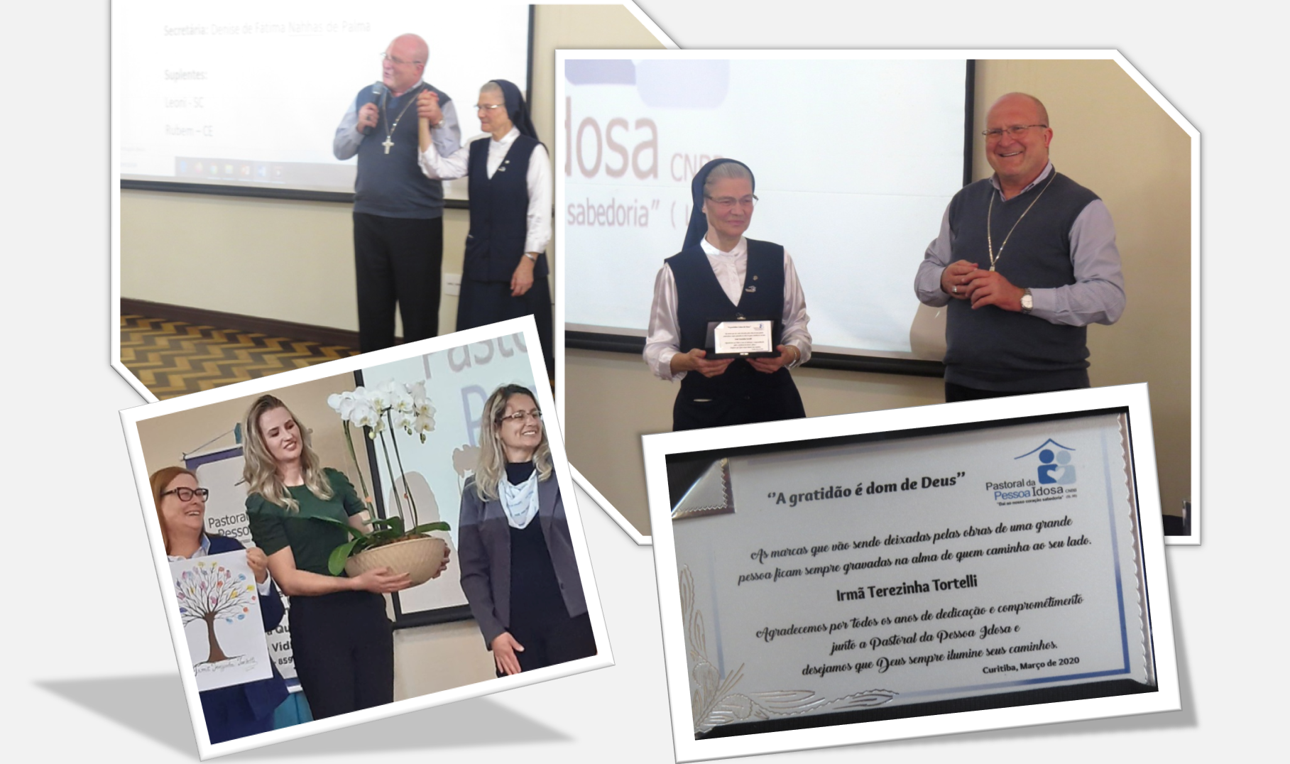 Também no dia 04 de Março de 2020 foi prestada Homenagem à Ir. Terezinha Tortelli que ficou na Coordenação Nacional da Pastoral da Pessoa Idosa por 10 anos. Sua dedicação à causa já veio antes mesmo de assumir a Coordenação Nacional, pois estava presente junto com Dra. Zilda Arns desde a fundação da Instituição há 15 anos. Muito obrigada Ir. Terezinha por todo empenho, dedicação, coragem, bravura e atenção junto às pessoas idosas de todo Brasil. Sua Missão foi cumprida com maestria!!!